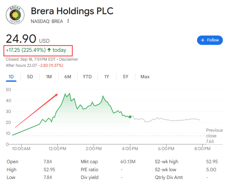 Một bài báo trên tờ Jianwen đưa tin nhà đầu tư nổi tiếng Cathie Wood, cùng với Các Tiểu vương quốc Ả Rập Thống nhất, đã đầu tư 300 triệu đô la vào Brera Holdings, công ty niêm yết trên Nasdaq. Công ty sẽ chuyển đổi thành một quỹ đầu tư chuyên tích trữ token Solana và được đổi tên thành Solmate. Sau thông báo này, giá cổ phiếu của công ty đã tăng 592% và duy trì mức tăng 225% khi đóng cửa.