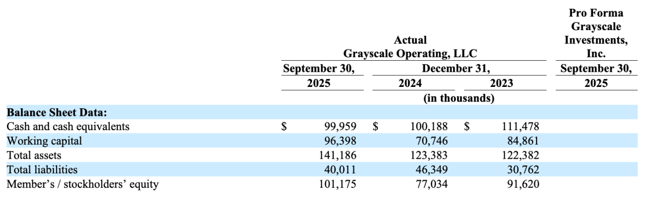 Theo hồ sơ S-1, tính đến ngày 30 tháng 9 năm nay, tổng tài sản do Grayscale quản lý đã đạt 35 tỷ đô la, trở thành công ty quản lý tài sản tiền điện tử lớn nhất thế giới. Công ty cung cấp hơn 40 sản phẩm đầu tư tài sản kỹ thuật số, bao gồm hơn 45 loại tiền điện tử. 35 tỷ đô la bao gồm 33,9 tỷ đô la trong các quỹ ETP và ETF (chủ yếu là các sản phẩm liên quan đến Bitcoin, Ethereum và SOL) và 1,1 tỷ đô la trong các quỹ đầu tư tư nhân (chủ yếu là các sản phẩm đầu tư altcoin).