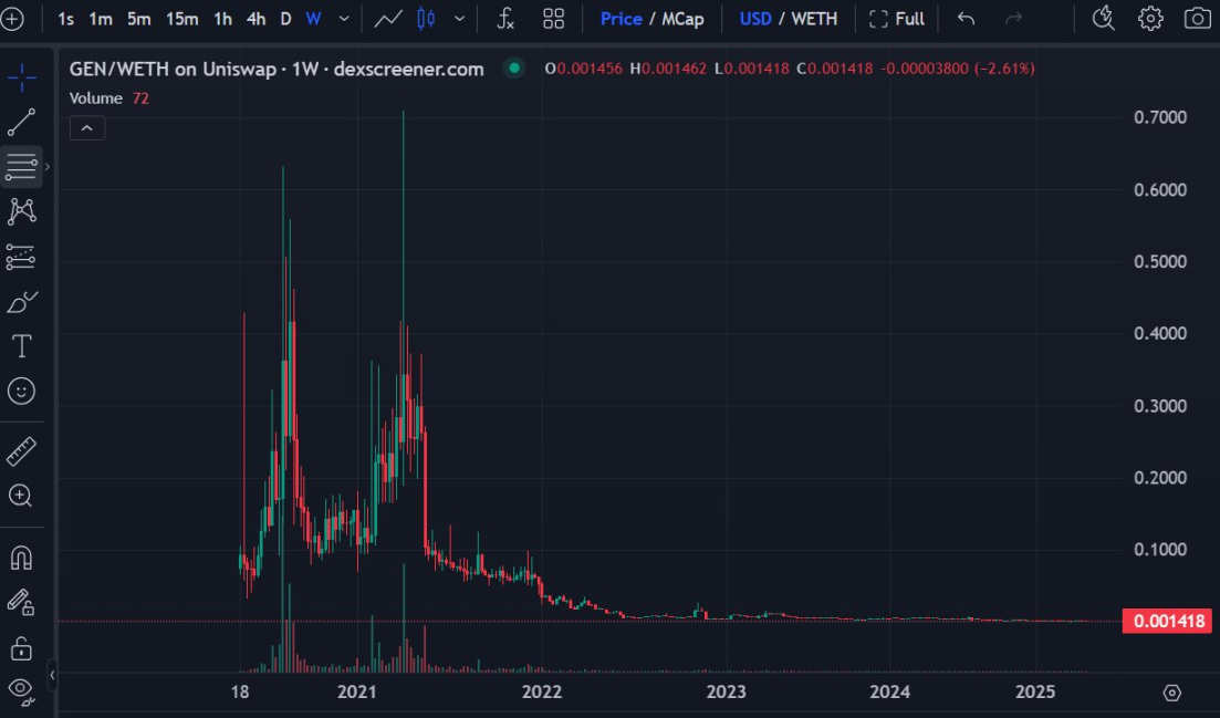Theo KOL tiền điện tử @cryptobraveHQ, DAOstack đã phát hành token $Gen vào năm 2019 và để token này "rơi tự do" sau thị trường tăng giá năm 2021. "Nhóm quá lười để chuyển sang một sàn giao dịch nhỏ và cứ để token này về 0 sau khi phát hành."