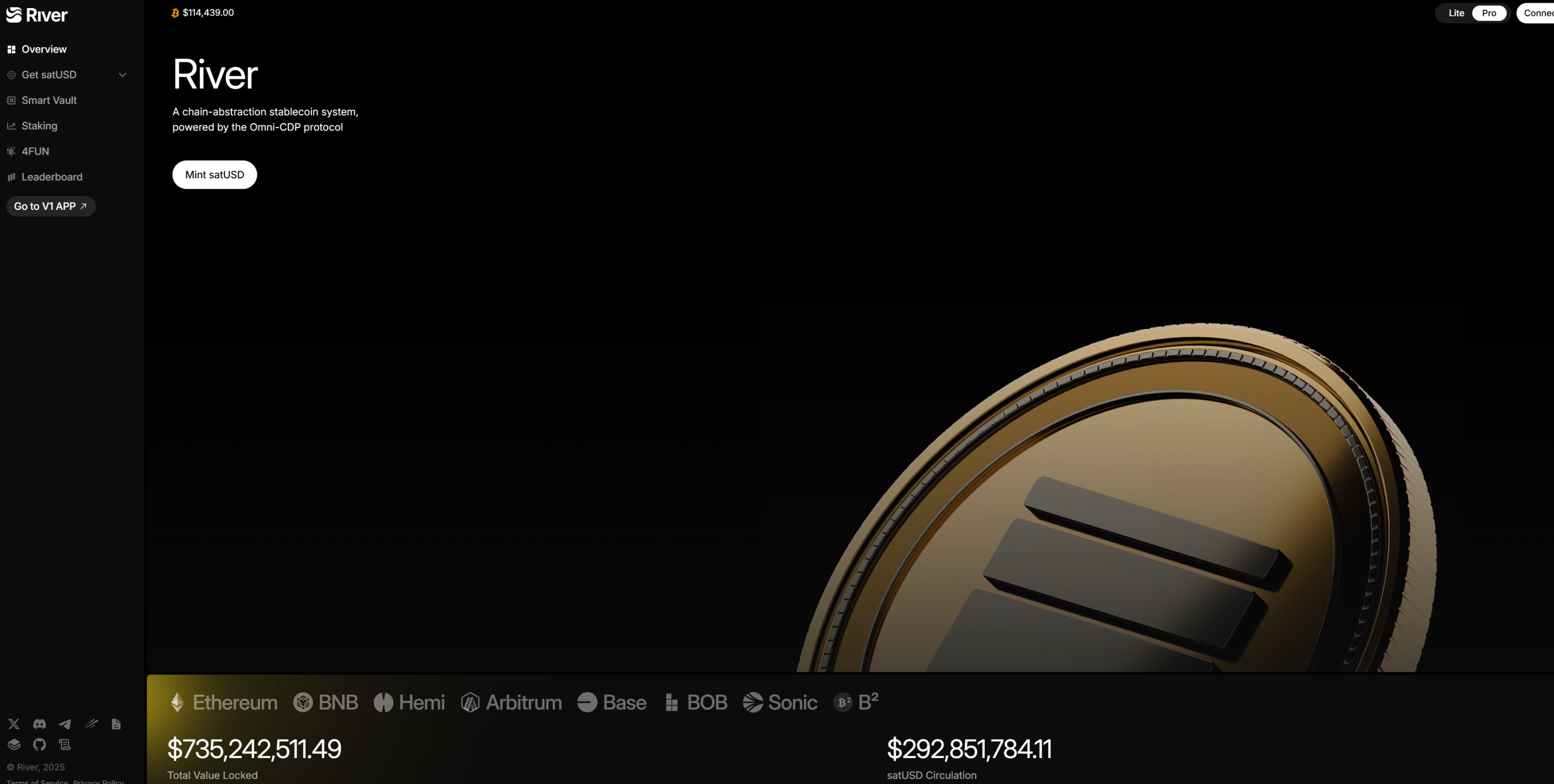 Theo trang web chính thức, tổng giá trị giao dịch (TVL) của River đã vượt quá 735 triệu đô la, với hơn 290 triệu satUSD đang lưu hành. River đã tích hợp với hơn 30 giao thức, bao gồm Pendle, ListaDAO và Solv. Hệ thống stablecoin của River dựa trên kiến trúc Omni-CDP (Vị thế Nợ Thế chấp), tận dụng LayerZero để chuyển khoản xuyên chuỗi an toàn và tích hợp nguồn cấp dữ liệu giá Chainlink để có dữ liệu thị trường chính xác. Điều này cho phép người dùng duy trì quyền kiểm soát tài sản của mình trong khi tiếp cận các cơ hội toàn cầu mà không cần trung gian hoặc hạn chế biên giới.