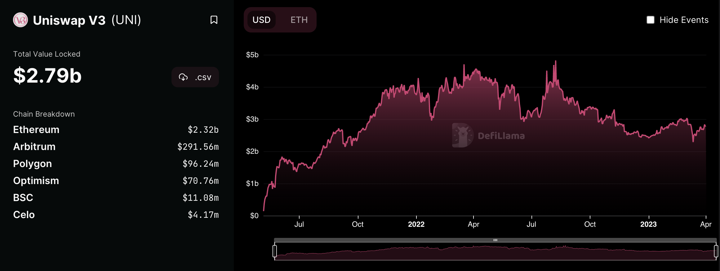 Vào tháng 5 năm 2021, ngay sau khi được ra mắt, Unisawp v3 đã vượt qua Bitcoin về khả năng tạo phí hàng ngày, Cointelegraph đưa tin. Dữ liệu từ Cryptofees cho thấy Uniswap v3 đang tạo ra 4,5 triệu đô la phí hàng ngày vào thời điểm đó, trong khi Bitcoin đứng sau vào thời điểm đó với 3,7 triệu đô la phí phát sinh hàng ngày.