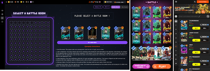 Trong mỗi Vương quốc, các trận đấu thẻ bài PvP 3x3 đặc trưng của ANOME cho phép người chơi cạnh tranh với các thẻ NFT, với chỉ số có thể lật ngược quyền sở hữu hoặc tạo đà cho phần thưởng sau khi bị phá hủy. Ngay cả khi thua, người chơi vẫn có thể kiếm thu nhập thông qua việc khai thác thua lỗ, thúc đẩy sự tham gia bền vững.