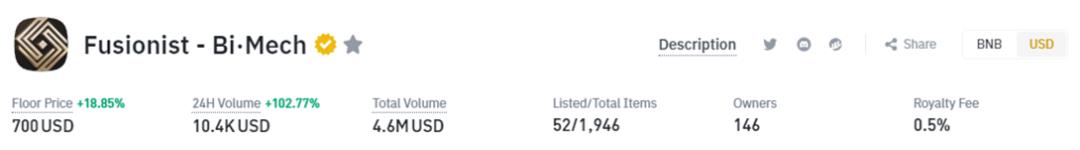 Hai dòng NFT được nhóm Fusionist phát hành vào đầu năm nay: Bi·Mech và Alpha Prestige đã bán hết ngay khi vừa ra mắt. Số lượng đăng ký của Bi·Mech đã vượt 2,15 triệu BUSD và 4.600 người đăng ký, vượt hạn mức đăng ký gấp 12 lần; Alpha Prestige tăng 85% trong vòng 7 ngày sau khi phát hành và hôm nay giá sàn cũng tăng, đạt 6,77$ETH.