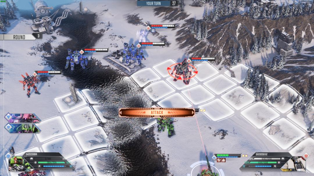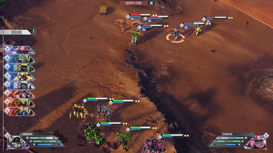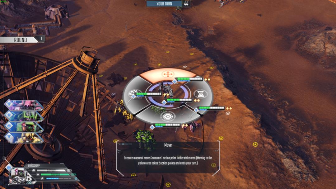 Đến lượt người chơi, có ba thao tác: di chuyển, đứng yên và thả kỹ năng, mỗi hiệp chỉ có hai điểm hành động (hiển thị bên cạnh thanh máu), kỹ năng di chuyển và thả ra sẽ tiêu tốn điểm hành động. sẽ trực tiếp kết thúc vòng hành động của cỗ máy này. Việc di chuyển sẽ tiêu tốn số điểm khác nhau tùy theo khoảng cách di chuyển, nếu bạn di chuyển ở khoảng cách gần (hiển thị bằng điểm trắng) thì sẽ còn lại một số điểm hành động để tấn công.