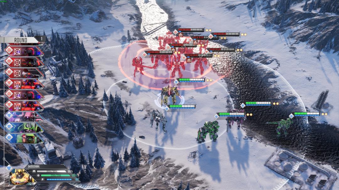 Sau khi vào game hai bên sinh ra ở hai đầu bản đồ, thanh bên trái màn hình biểu thị số vòng và thứ tự hành động của mecha hai bên, màu xanh là mecha của chúng ta và màu đỏ là mecha của chúng ta. cơ khí địa phương. Trong vòng đấu, máy của cả hai bên hành động theo thứ tự tùy theo sự nhanh nhẹn của mình.