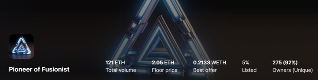Pioneer là bằng chứng về việc tham gia thử nghiệm Fusionist Beta và giá sàn hiện tại là 2,05$ETH.